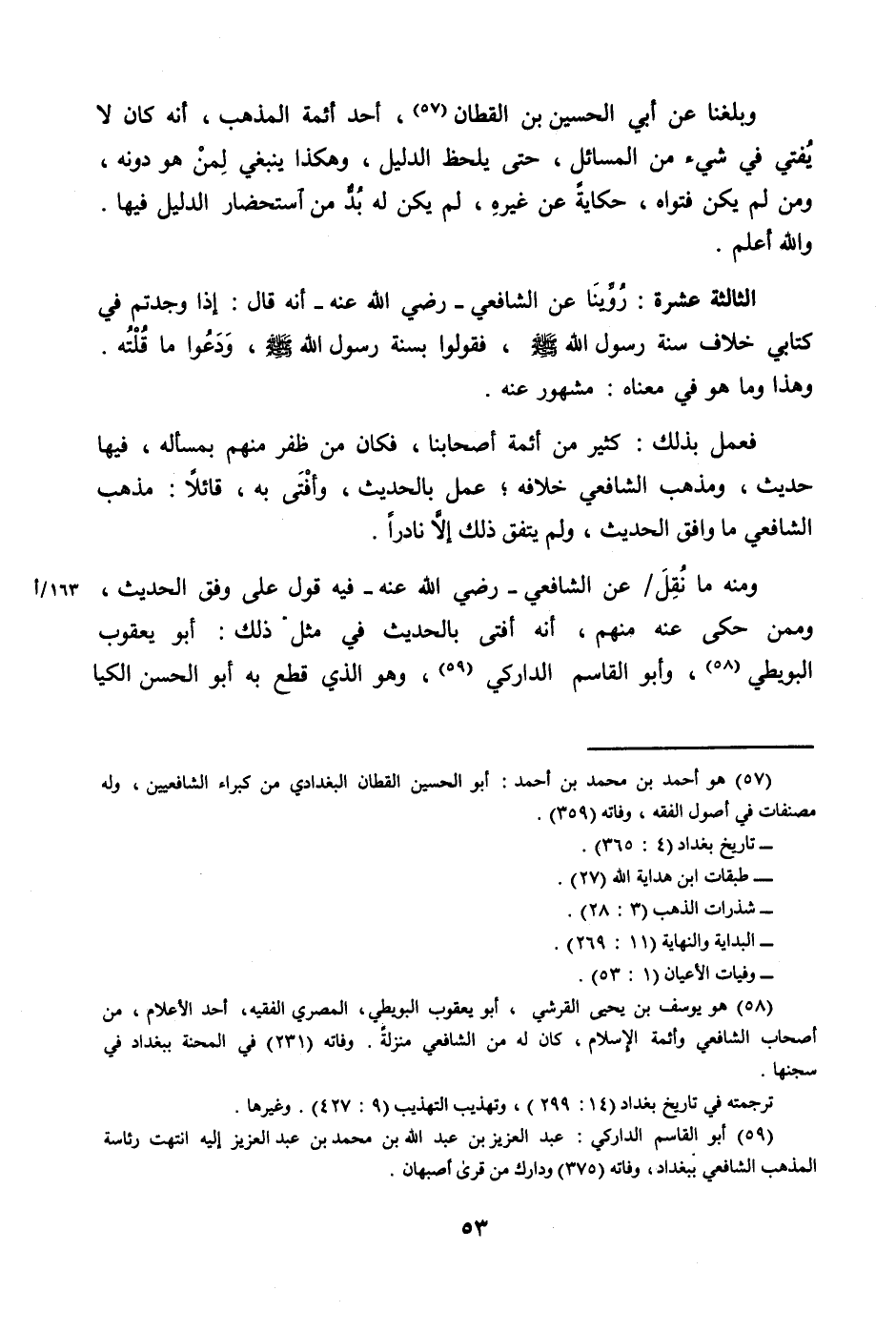 وبلغنا عَن أبي الْحُسَيْن بن الْقطَّان أحد أَئِمَّة الْمَذْهَب أَنه كَانَ لَا يُفْتِي فِي شَيْء من الْمسَائِل حَتَّى يلحظ الدَّلِيل وَهَكَذَا يَنْبَغِي لمن هُوَ دونه وَمن لم يكن فتواه حِكَايَة عَن غَيره لم يكن لَهُ بُد من آستحضار الدَّلِيل فِيهَا وَالله أعلم