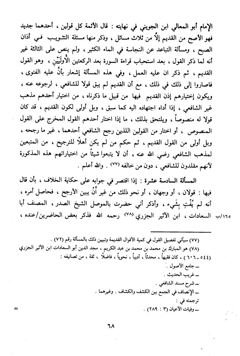 الْمَسْأَلَة السَّادِسَة عشرَة إِذا اقْتصر فِي جَوَابه على حِكَايَة الْخلاف بِأَن قَالَ فِيهَا قَولَانِ أَو وَجْهَان أَو نَحْو ذَلِك من غير أَن يبين الْأَرْجَح فحاصل أمره أَنه لم يفت بِشَيْء وأذكر أَنِّي حضرت بالموصل الشَّيْخ الصَّدْر المُصَنّف أَبَا السعادات ابْن الْأَثِير الْجَزرِي رَحمَه الله فَذكر بعض الْحَاضِرين عِنْده