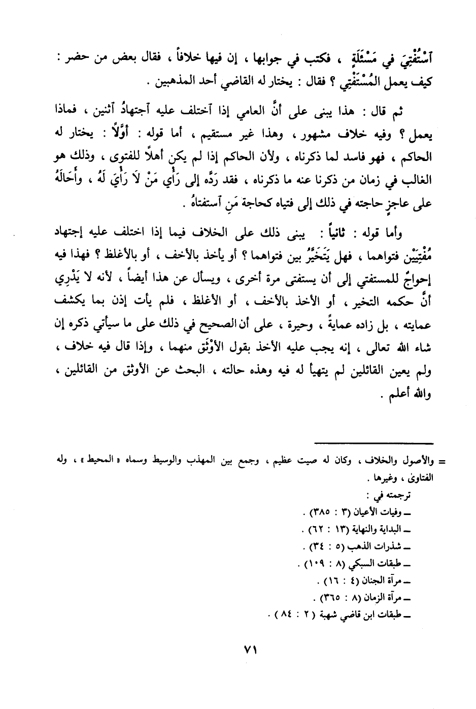@ آستفتي من مسئلة فَكتب فِي جوابها إِن فِيهَا خلافًا فَقَالَ بعض من حضر كَيفَ يعْمل المستفتي فَقَالَ يخْتَار لَهُ القَاضِي أحد المذهبين
