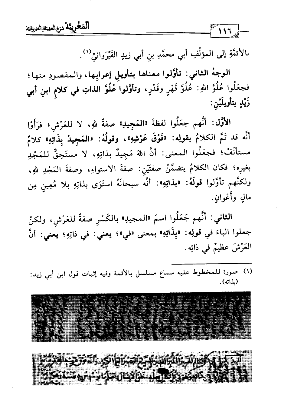 (١) صورة للمخطوط عليه سماع مسلسل بالأئمة وفيه إثبات قول ابن أبي زيد: (بذاته).