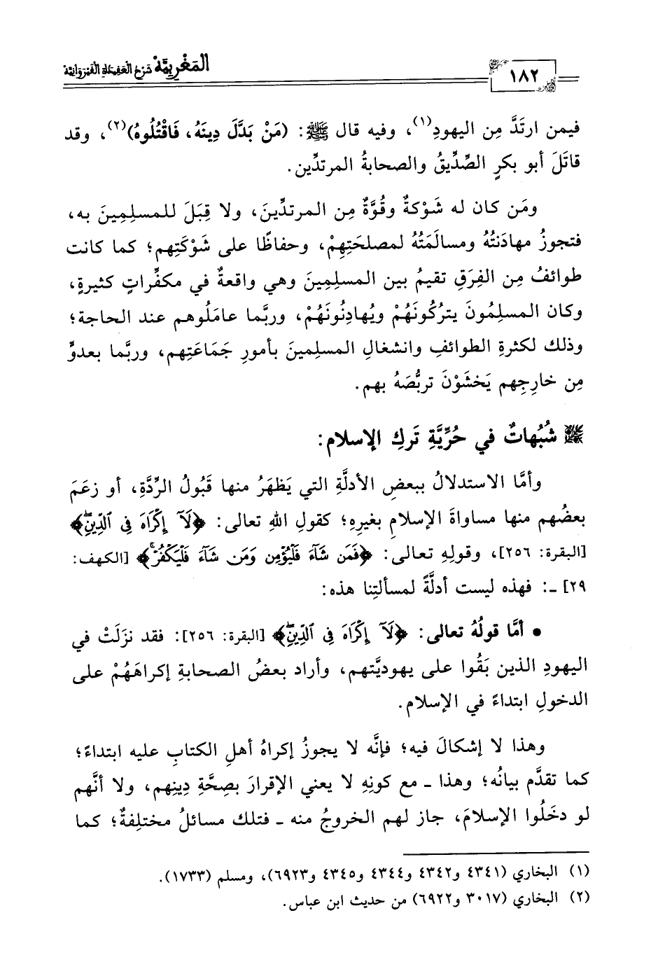 * شُبُهاتٌ في حُرِّيَّةِ تَركِ الإسلام: