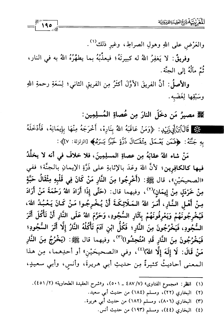 (١) انظر: "مجموع الفتاوى" (٧/ ٤٨٧ - ٥٠١)، و"شرح العقيدة الطحاوية" (٢/ ٤٥١).