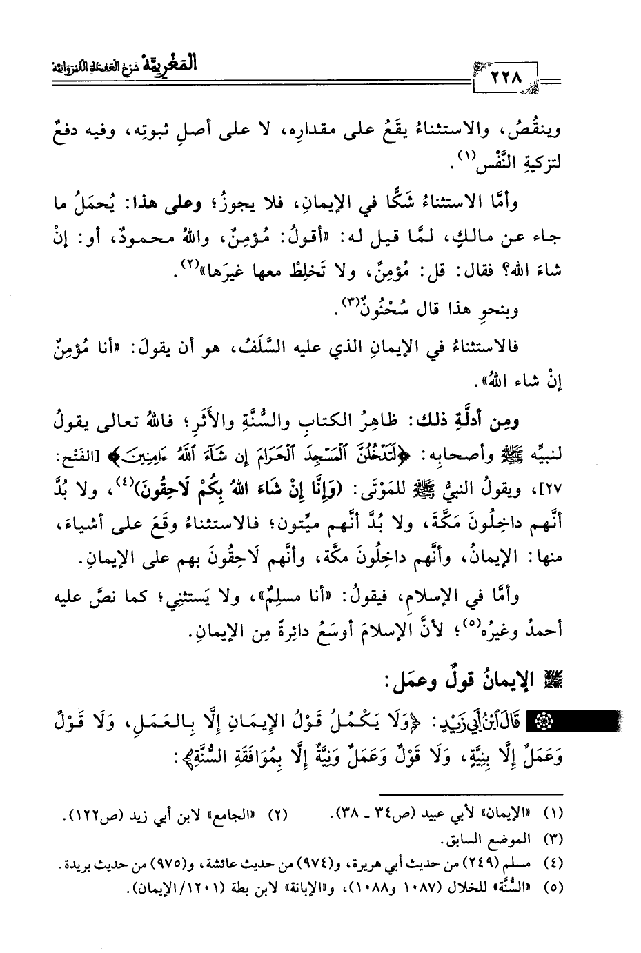 (١) "الإيمان" لأبي عبيد (ص ٣٤ - ٣٨).