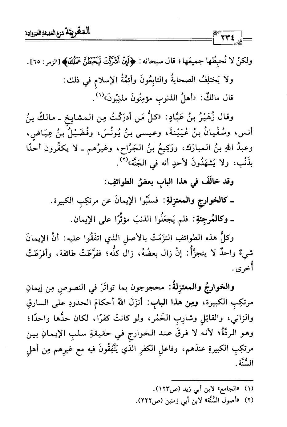 (٢) "أصول السُّنَّة" لابن أبي زمنين (ص ٢٢٢).
