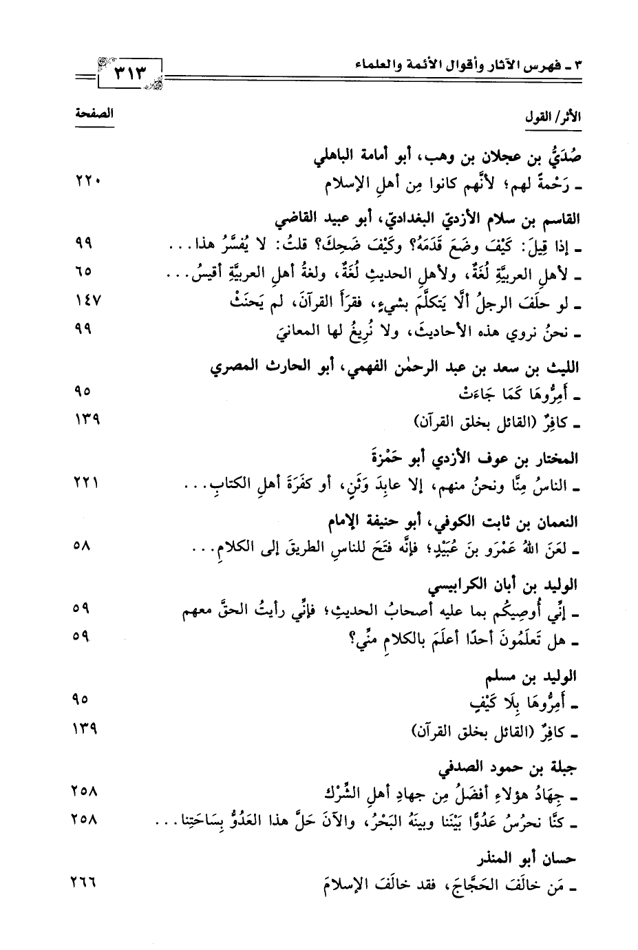 - كافِرٌ (القائل بخلق القرآن) ..................................................... ١٣٩