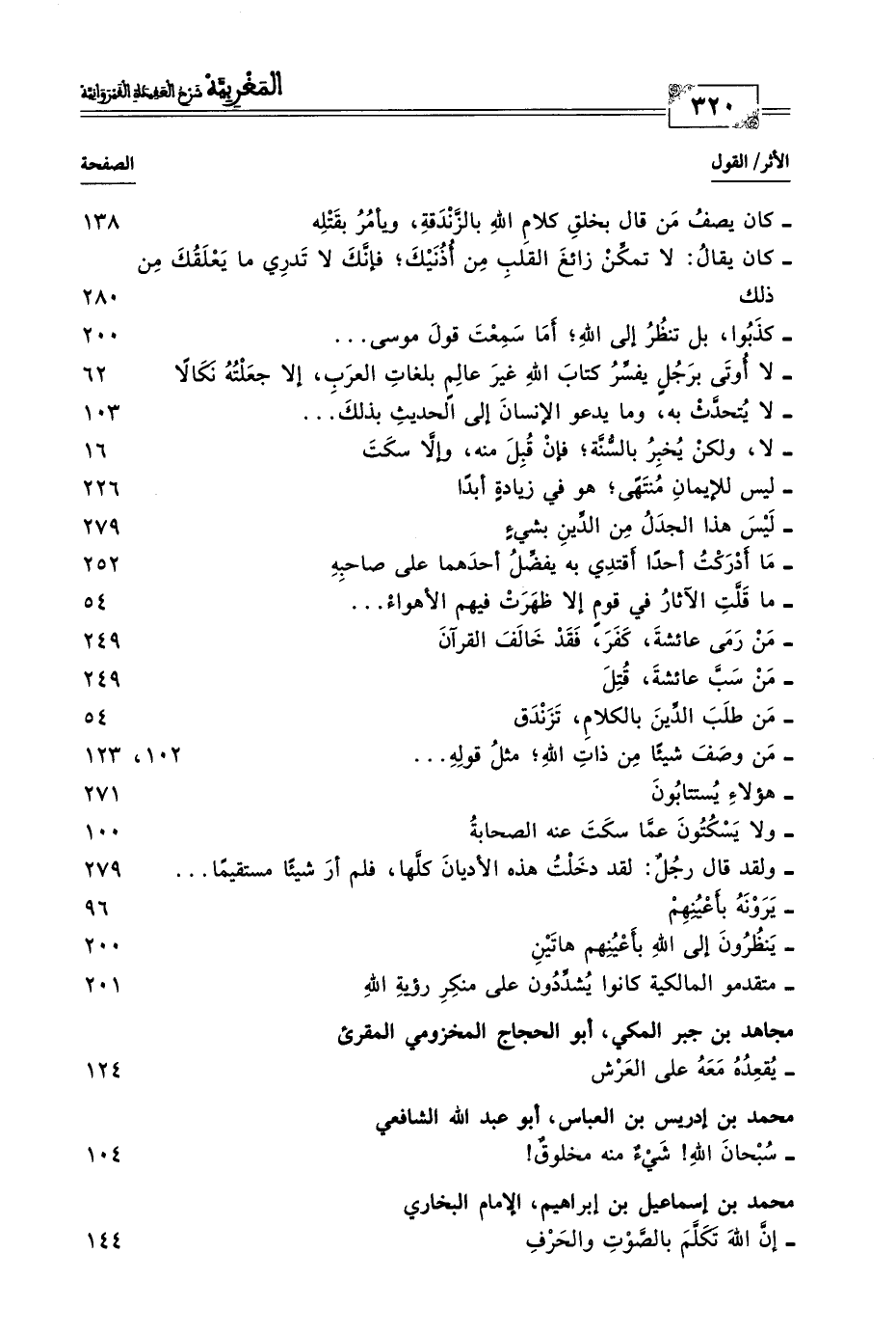 - إنَّ اللهَ تَكَلَّمَ بالصَّوْتِ والحَرْفِ ..................................................... ١٤٤