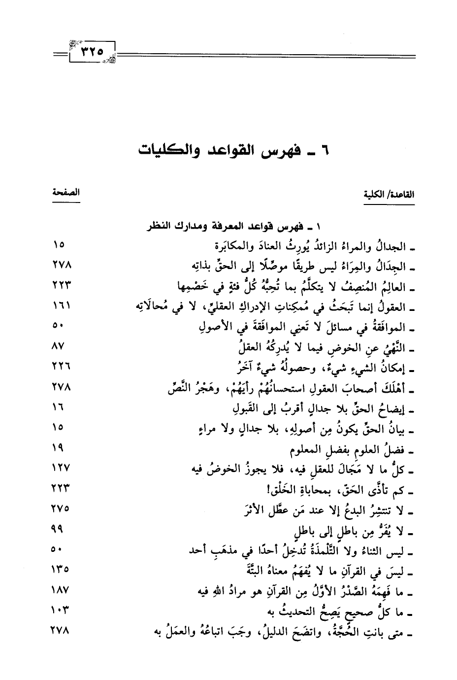 ١ - فهرس قواعد المعرفة ومدارك النظر