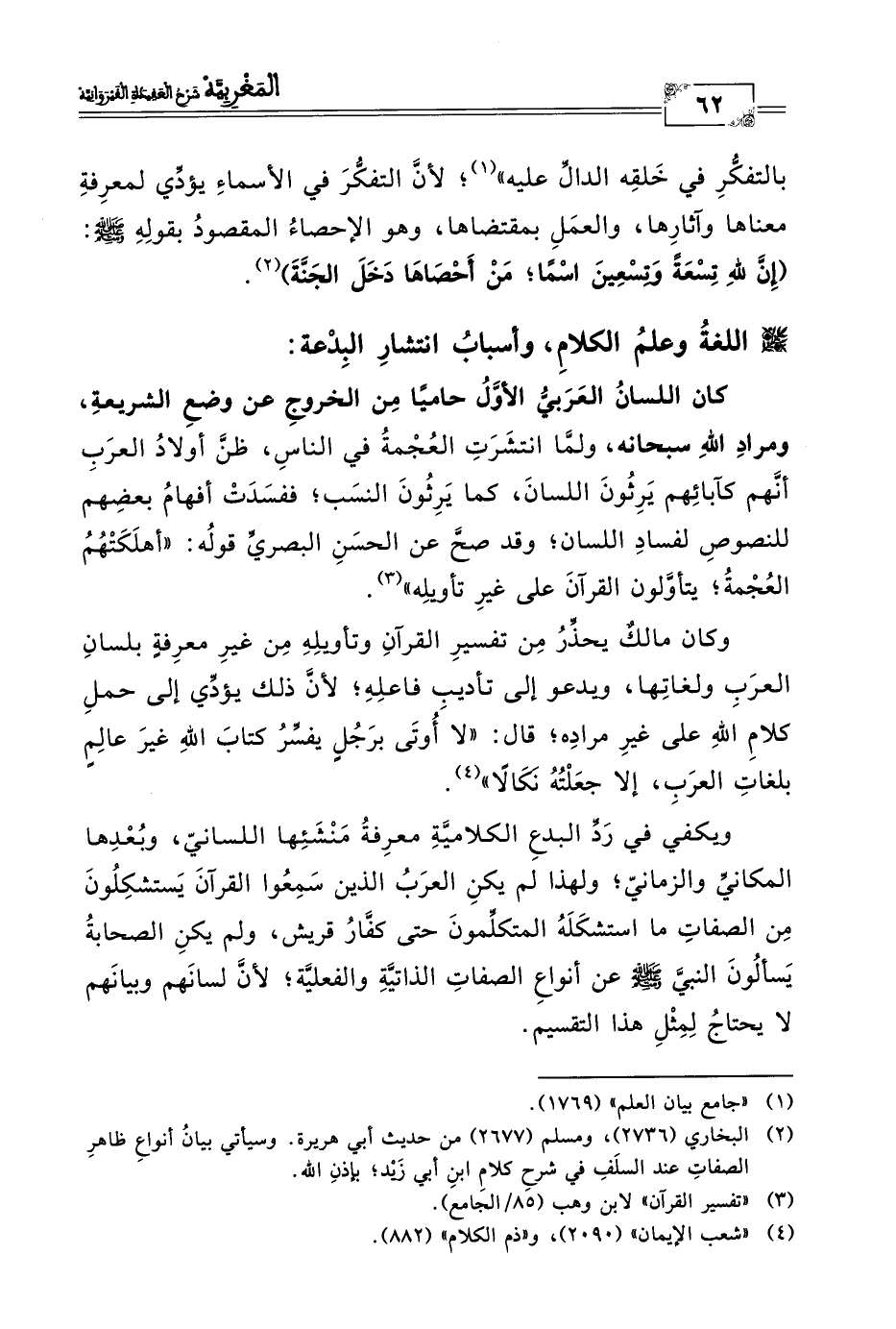 (٢) البخاري (٢٧٣٦)، ومسلم (٢٦٧٧) من حديث أبي هريرة. وسيأتي بيانُ أنواعِ ظاهرِ الصفاتِ عند السلَفِ في شرحِ كلامِ ابنِ أبي زَيْد؛ بإذنِ الله.