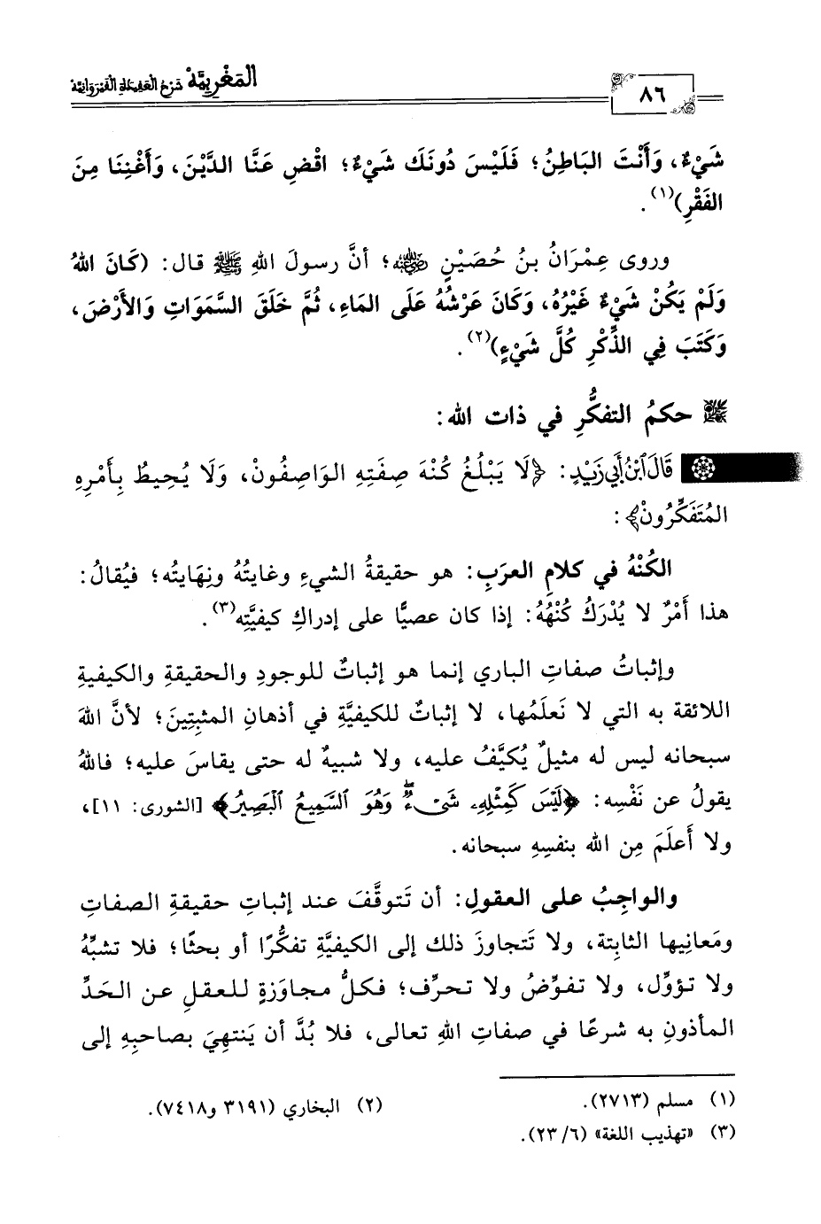 * قَالَ ابْنُ أَبي زَيْدٍ: (لَا يَبْلُغُ كُنْهَ صِفَتِهِ الوَاصِفُونْ، وَلَا يُحِيطُ بأَمْرِهِ المُتَفَكِّرُونْ):