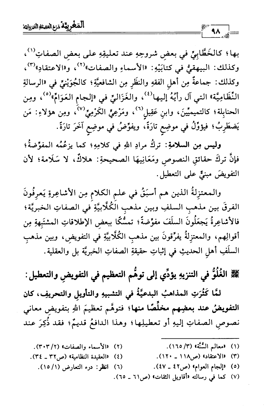 * الغُلُوُّ في التنزيهِ يؤدِّي إلى توهُّم التعظيم في التفويضِ والتعطيل:
