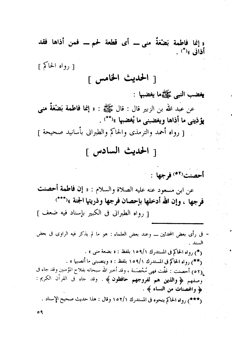 عن عبد الله بن الزبير قال: قال صلى الله عليه وسلم: (إنما فاطمة بضعة مني يؤذيني ما أذاها ويغضبني ما يغضبها) .