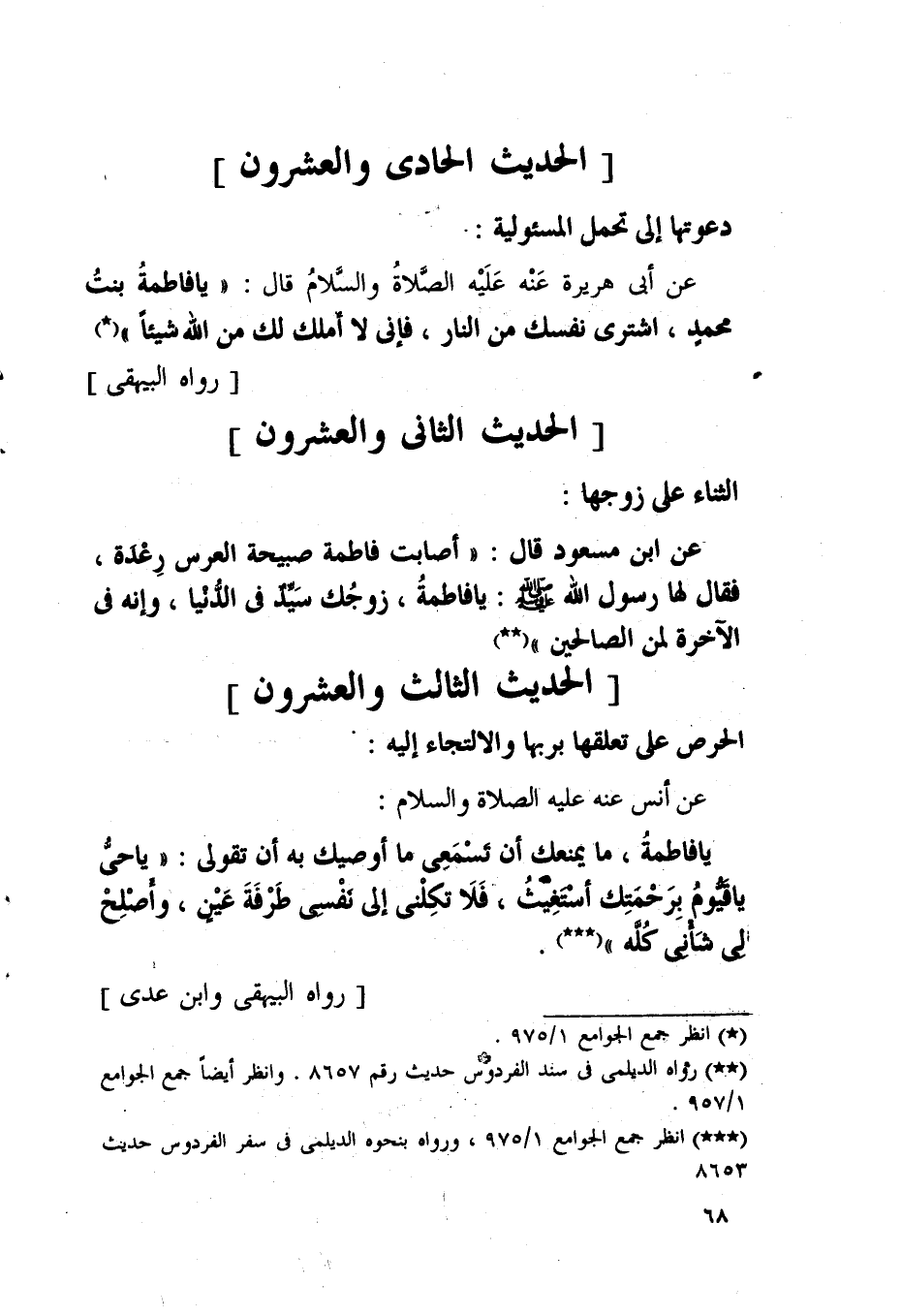 عن أبي هريرة عنه عليه الصلاة والسلام قال: (يا فاطمة بنت محمد، اشترى نفسك من النار، فإني لا أملك لك من الله شيئا) .