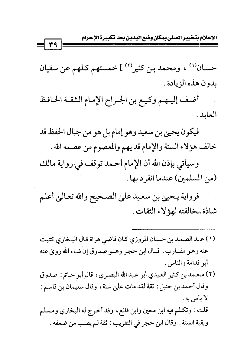 (2) محمد بن كثير العبدي أبو عبد الله البصري، قال أبو حاتم: صدوق وقال أحمد بن حنبل: ثقة لقد مات على سنة، وقال سليمان بن قاسم: لا بأس به.