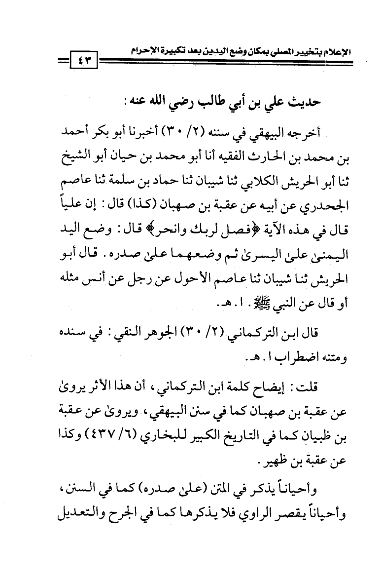 قلت: إيضاح كلمة ابن التركماني، أن هذا الأثر يروى عن عقبة بن صهبان كما في سنن البيهقي، ويروى عن عقبة بن ظبيان كما في التاريخ الكبير للبخاري (6/ 437) وكذا عن عقبة ابن ظهير.