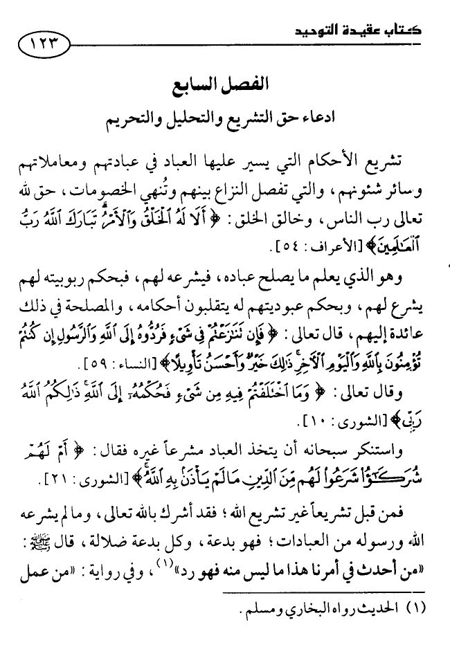 تشريع الأحكام التي يسير عليها العباد في عباداتهم ومعاملاتهم وسائر شئونهم، والتي تفصل النزاع بينهم وتُنهي الخصومات حق لله تعالى رب الناس، وخالق الخلق: {أَلَا لَهُ الْخَلْقُ وَالْأَمْرُ تَبَارَكَ اللَّهُ رَبُّ الْعَالَمِينَ} [الأعراف: 54] .