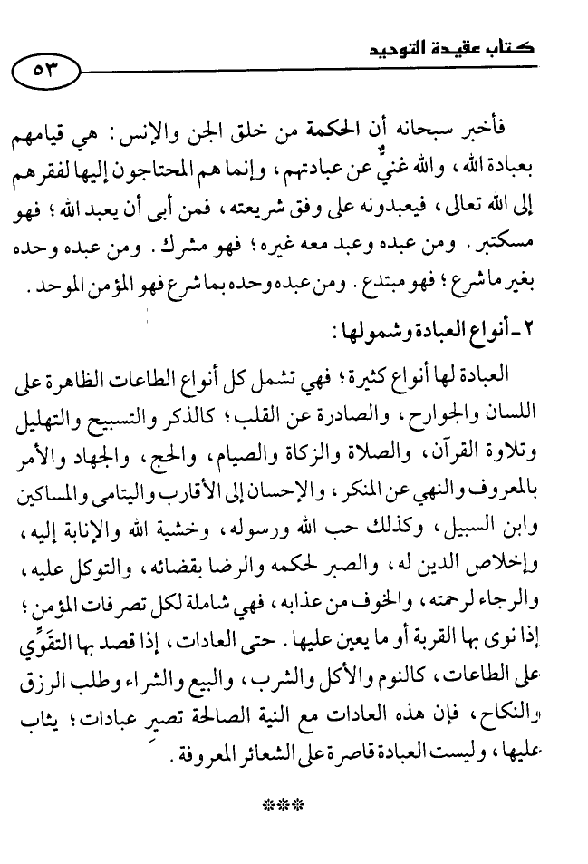 كتاب عقيدة التوحيد وبيان ما يضادها من الشرك الأكبر والأصغر والتعطيل والبدع وغير ذلك