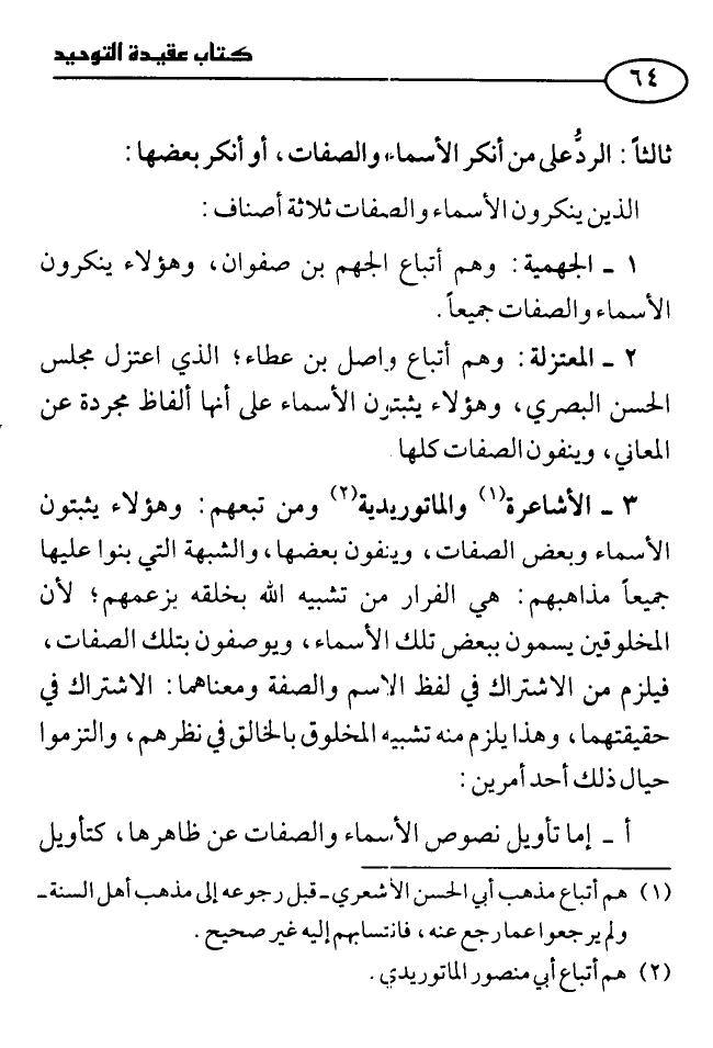 ثالثًا: الرّدُّ على من أنكَرَ الأسماءَ والصّفاتِ، أو أنكر بعضها: