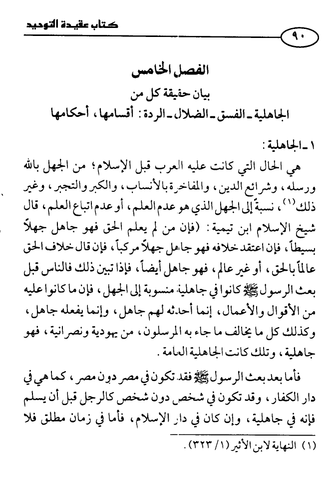 بيان حقيقة كل من الجاهلية - الفسق - الضلال - الردة: أقسامها، أحكامها