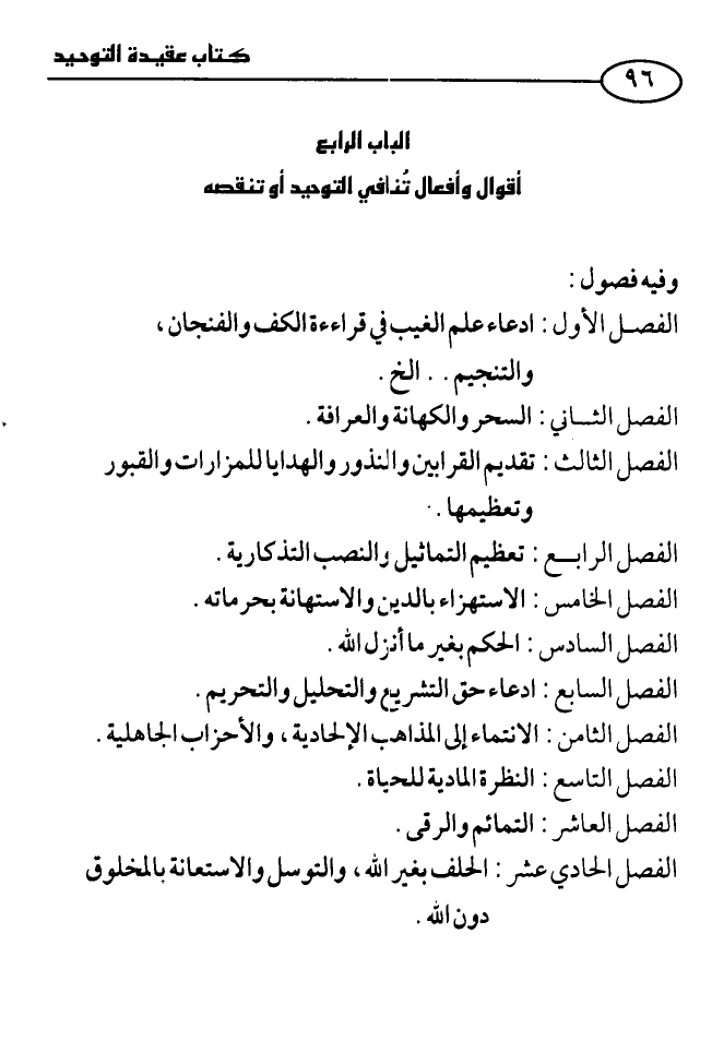 كتاب عقيدة التوحيد وبيان ما يضادها من الشرك الأكبر والأصغر والتعطيل والبدع وغير ذلك
