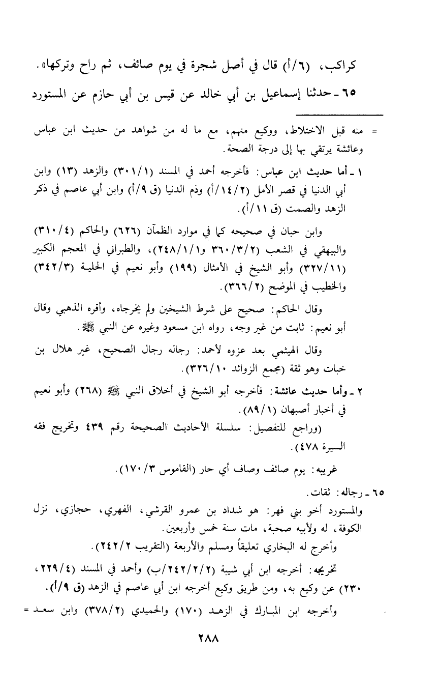 65 - حَدَّثَنَا إِسْمَاعِيلُ بْنُ أَبِي خَالِدٍ، عَنْ قَيْسِ بْنِ أَبِي حَازِمٍ، عَنِ الْمُسْتَوْرِدِ -[289]- أَخِي بَنِي فِهْرٍ، قَالَ: قَالَ رَسُولُ اللَّهِ صَلَّى اللهُ عَلَيْهِ وَسَلَّمَ: «§مَا الدُّنْيَا فِي الْآخِرَةِ إِلَّا مِثْلُ مَا يَجْعَلُ أَحَدُكُمْ أُصْبُعَهُ هَذِهِ فِي الْيَمِّ، فَلْيَنْظُرْ بِمَ تَرْجِعُ إِلَيْهِ»