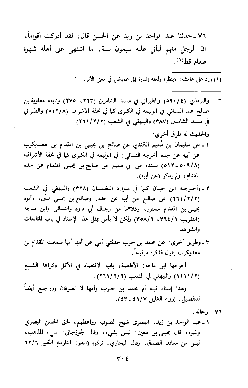 76 - حَدَّثَنَا عَبْدُ الْوَاحِدِ بْنُ زَيْدٍ، عَنِ الْحَسَنِ قَالَ: §لَقَدْ أَدْرَكْتُ أَقْوَامًا إِنََّ الرَّجُلَ مِنْهُمْ لَيَأْتِي عَلَيْهِ سَبْعُونَ سَنَةً مَا اشْتَهَى عَلَى أَهْلِهِ شَهْوَةَ طَعَامٍ قَطُّ