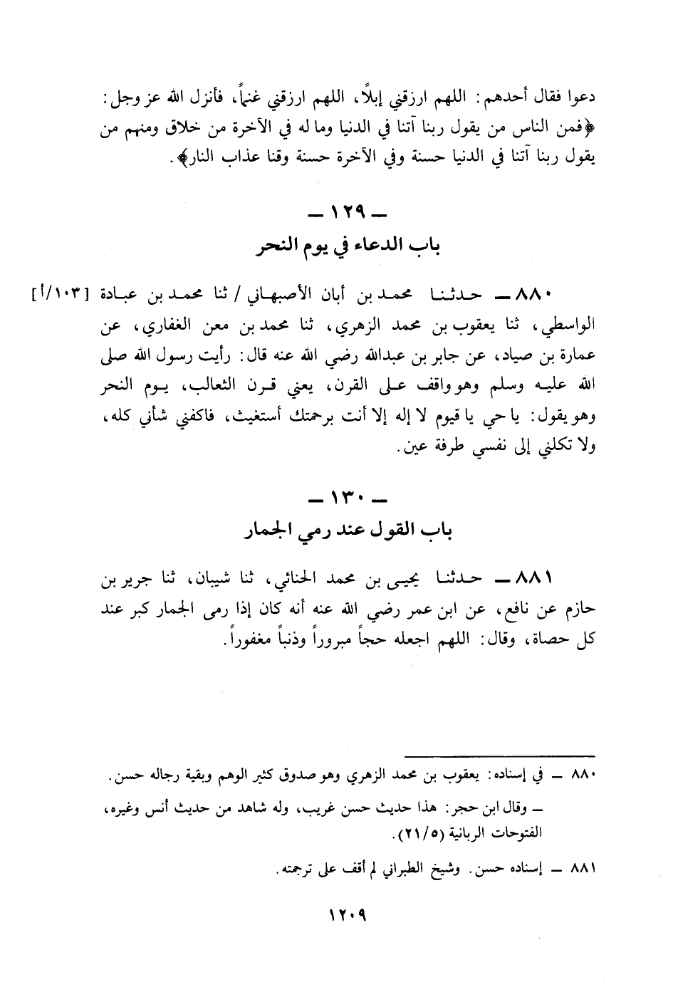 129- بَابُ الدُّعَاءِ فِي يَوْمِ النَّحْرِ