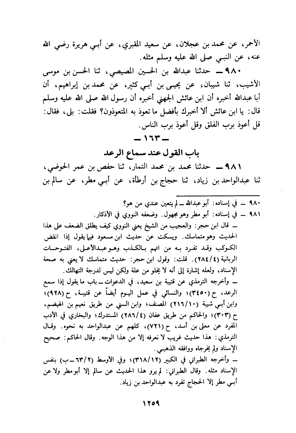 163- بَابُ الْقَوْلِ عِنْدَ سَمَاعِ الرَّعْدِ