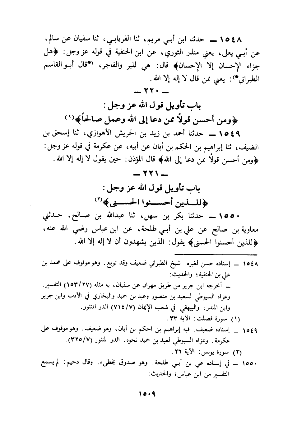 221- بَابُ تَأْوِيلِ قَوْلِ اللهِ عَزَّ وَجَلَّ: {لِلَّذِينَ أَحْسَنُوا الْحُسْنَى}.