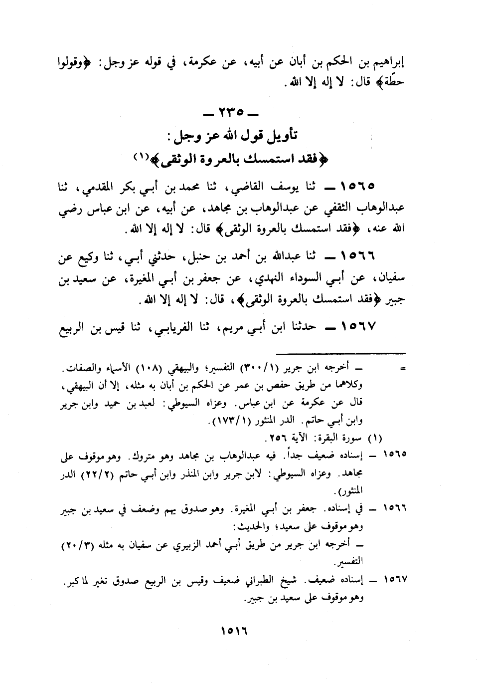 235- تَأْوِيلُ قَوْلِ اللهِ عَزَّ وَجَلَّ: {فَقَدِ اسْتَمْسَكَ بِالْعُرْوَةِ الْوُثْقَى}