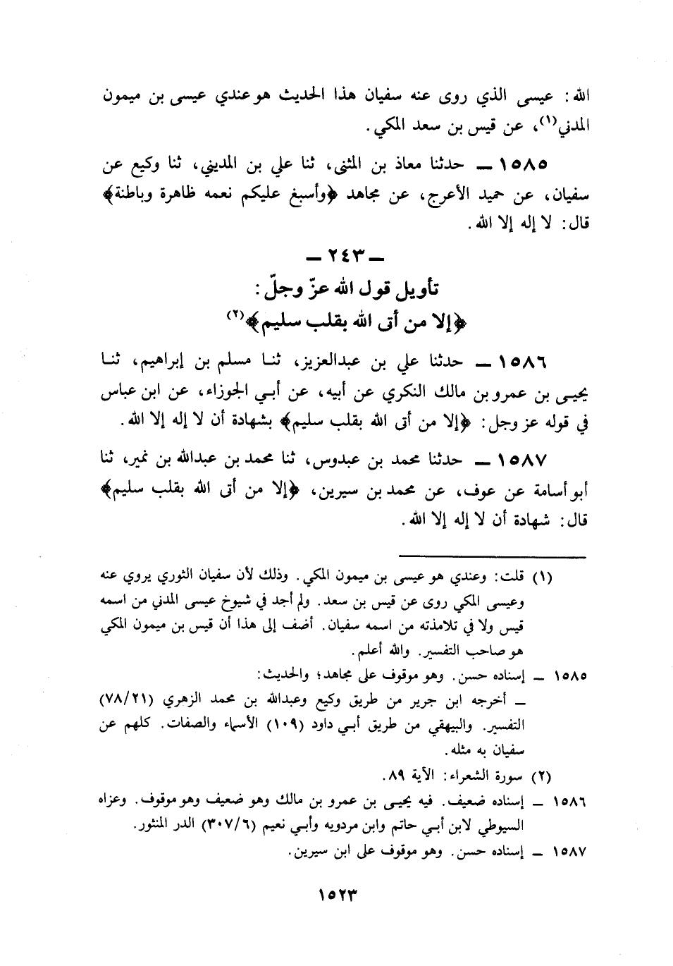 243- تَأْوِيلُ قَوْلِ اللهِ عَزَّ وَجَلَّ: {إِلاَّ مَنْ أَتَى اللَّهَ بِقَلْبٍ سَلِيمٍ}