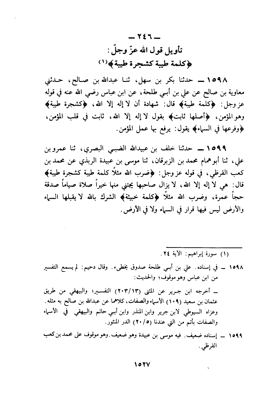 246- تَأْوِيلُ قَوْلِ اللهِ عَزَّ وَجَلَّ: {كَلِمَةً طَيِّبَةً كَشَجَرَةٍ طَيْبَةٍ}