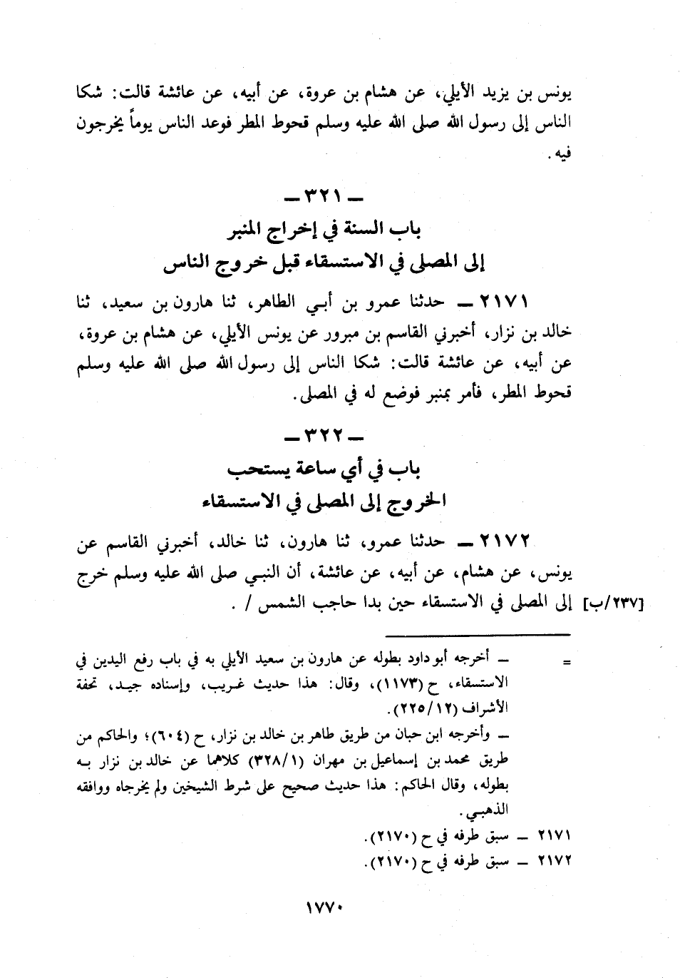 321- بَابُ السُّنَّةِ فِي إِخْرَاجِ الْمِنْبَرِ إِلَى الْمُصَلَّى فِي الِاسْتِسْقَاءِ قَبْلَ خُرُوجِ النَّاسِ