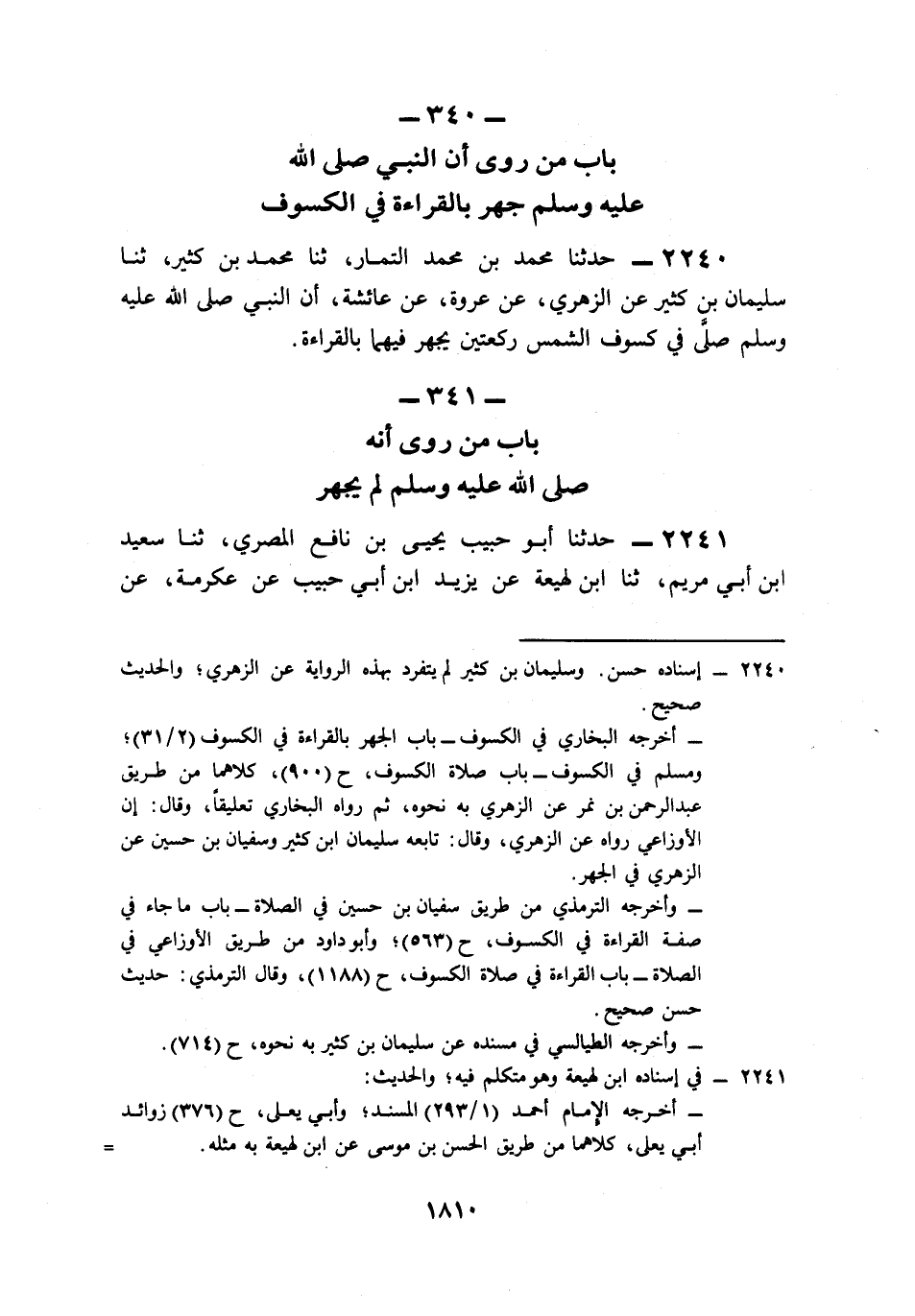 340- بَابُ مَنْ رَوَى أَنَّ النَّبِيَّ صَلى الله عَلَيه وَسَلم جَهَرَ بِالْقِرَاءَةِ فِي الْكُسُوفِ