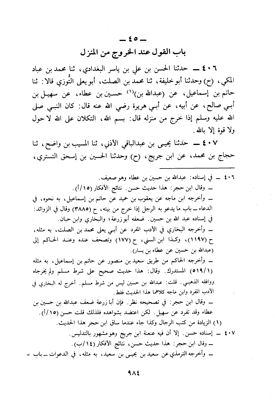 45- بَابُ الْقَوْلِ عِنْدَ الْخُرُوجِ مِنَ الْمَنْزِلِ.