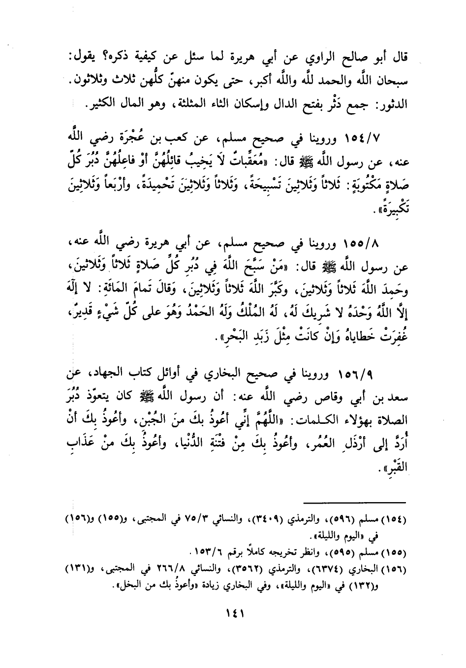 [154] مسلم (596)، والترمذي (3409)، والنسائي 3/ 75 في المجتبى، و (155) و (156) في "اليوم والليلة".
