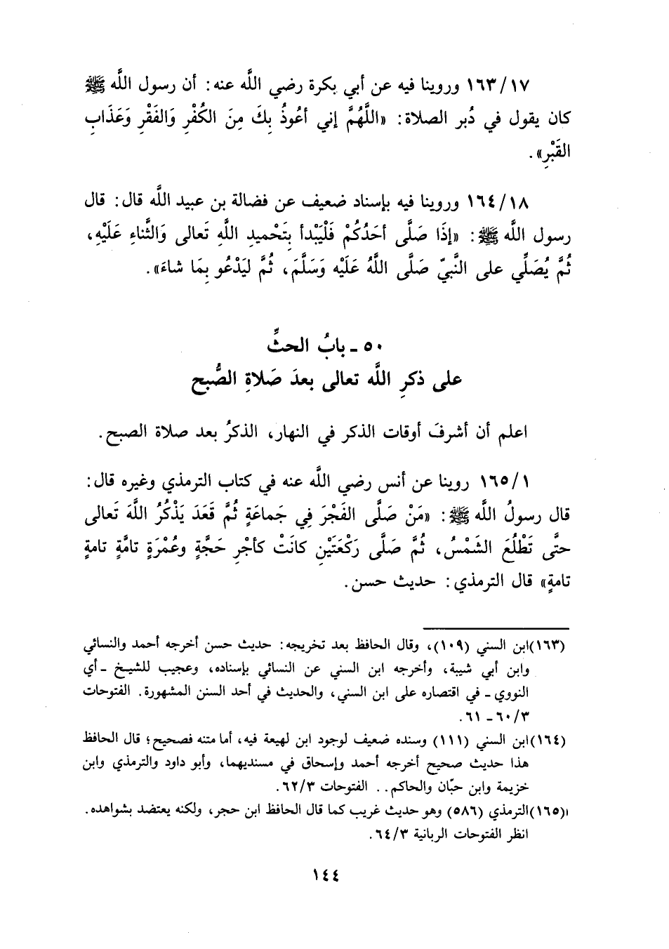 50 ـ بابُ الحثِّ على ذكرِ اللَّه تعالى بعدَ صَلاةِ الصُّبح