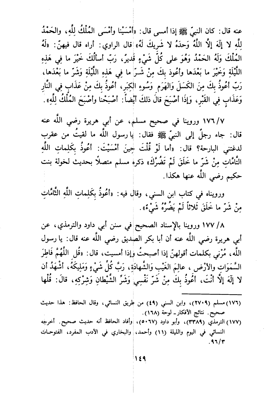 [176] مسلم (2709)، وابن السني (49) من طريق النسائي، وقال الحافظ: هذا حديث صحيح. نتائج الأفكار ـ لوحة (168).