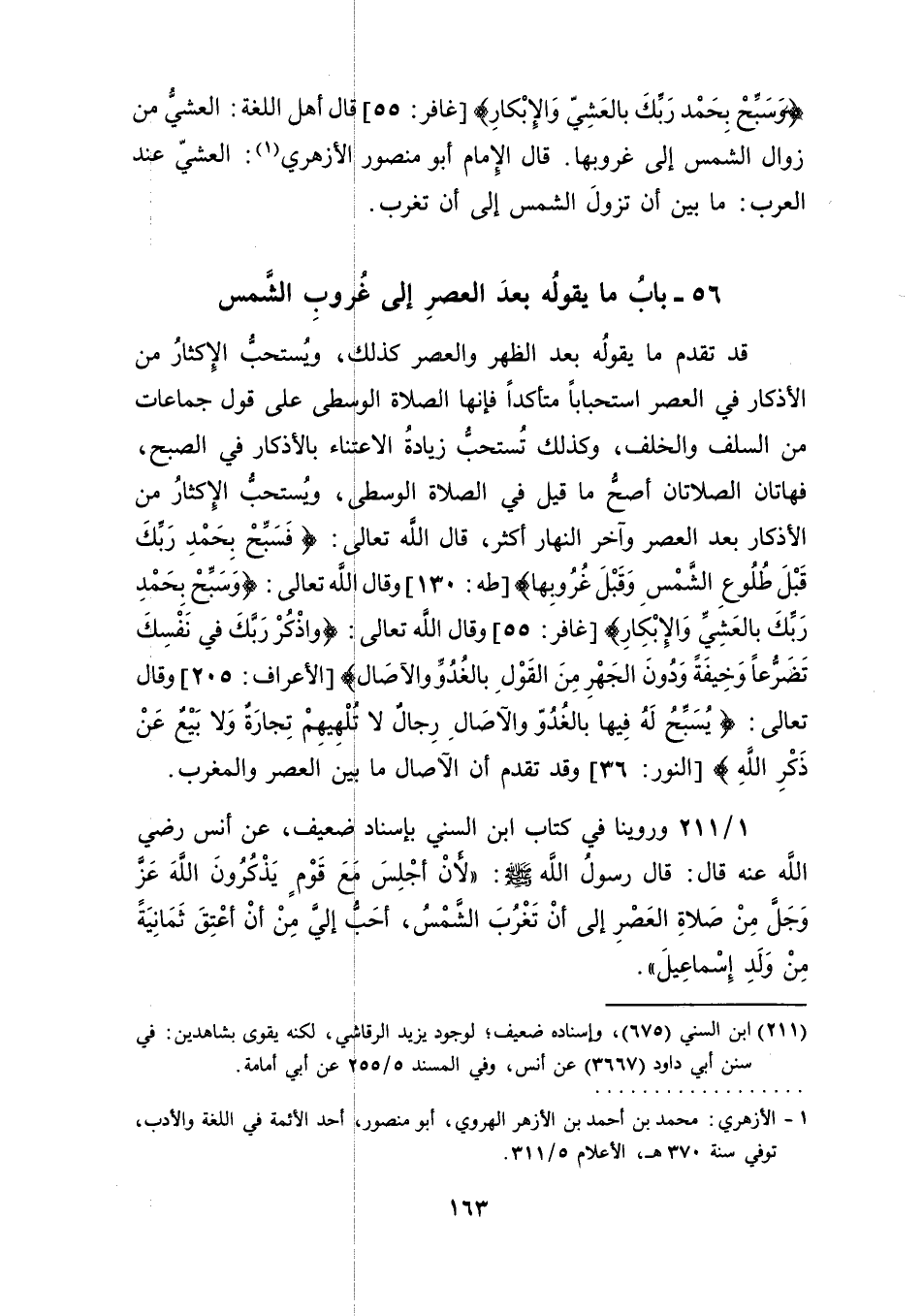 56 ـ بابُ ما يقولُه بعدَ العصرِ إلى غُروبِ الشَّمس