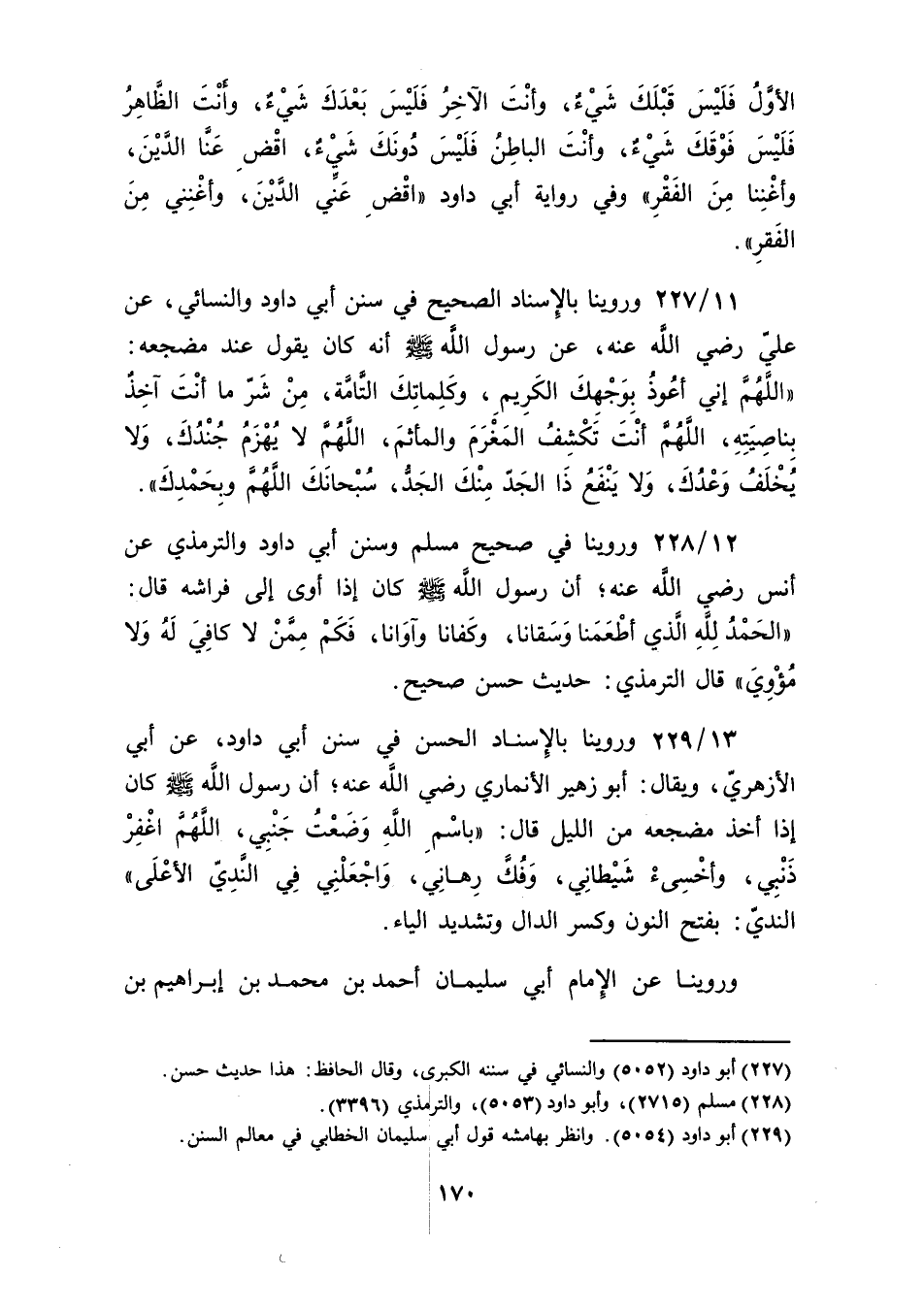 [11/ 227] وروينا بالإِسناد الصحيح في سنن أبي داود والنسائي، عن عليٍّ رضي الله عنه،