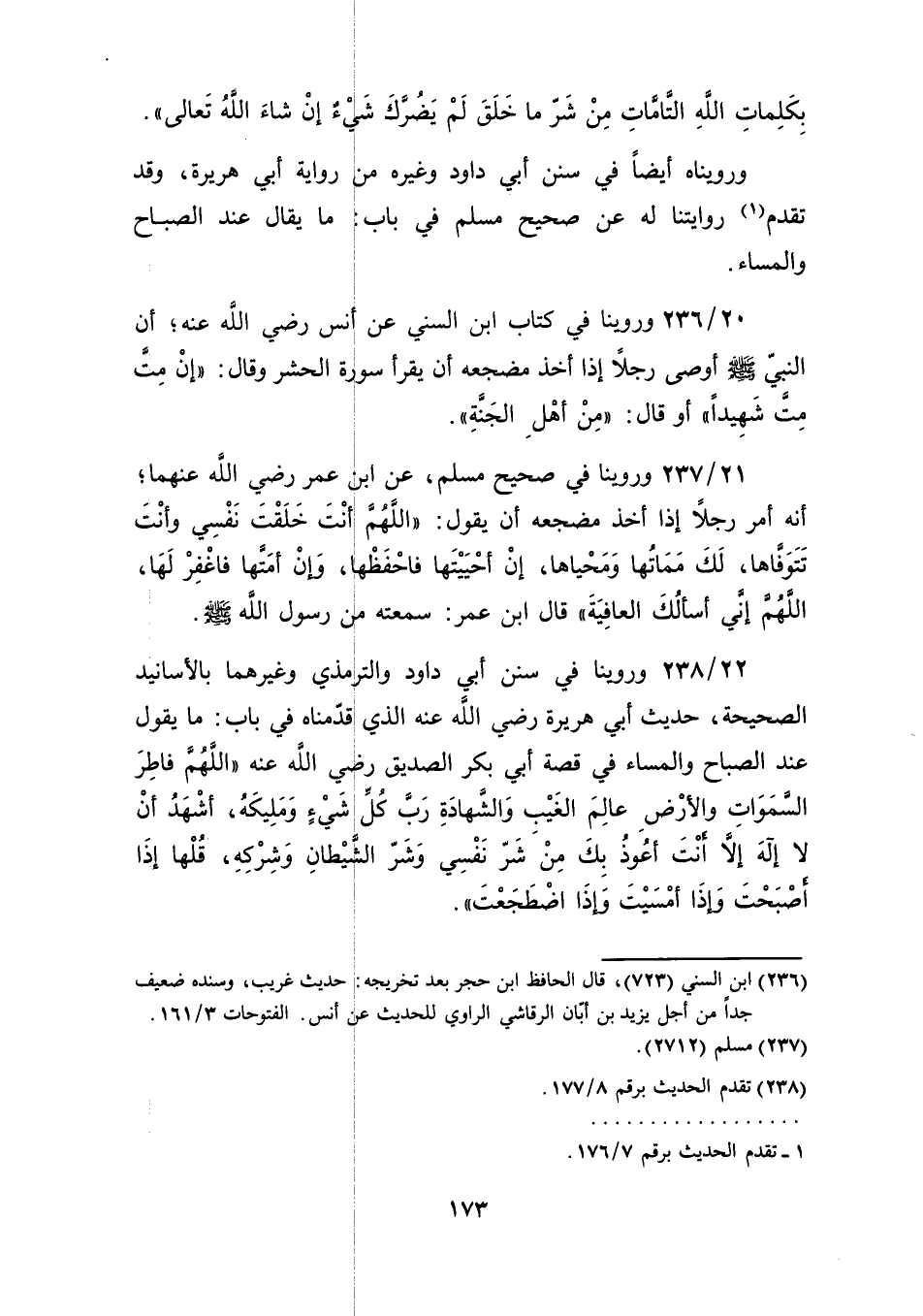 [20/ 236] وروينا في كتاب ابن السني عن أنس رضي الله عنه؛