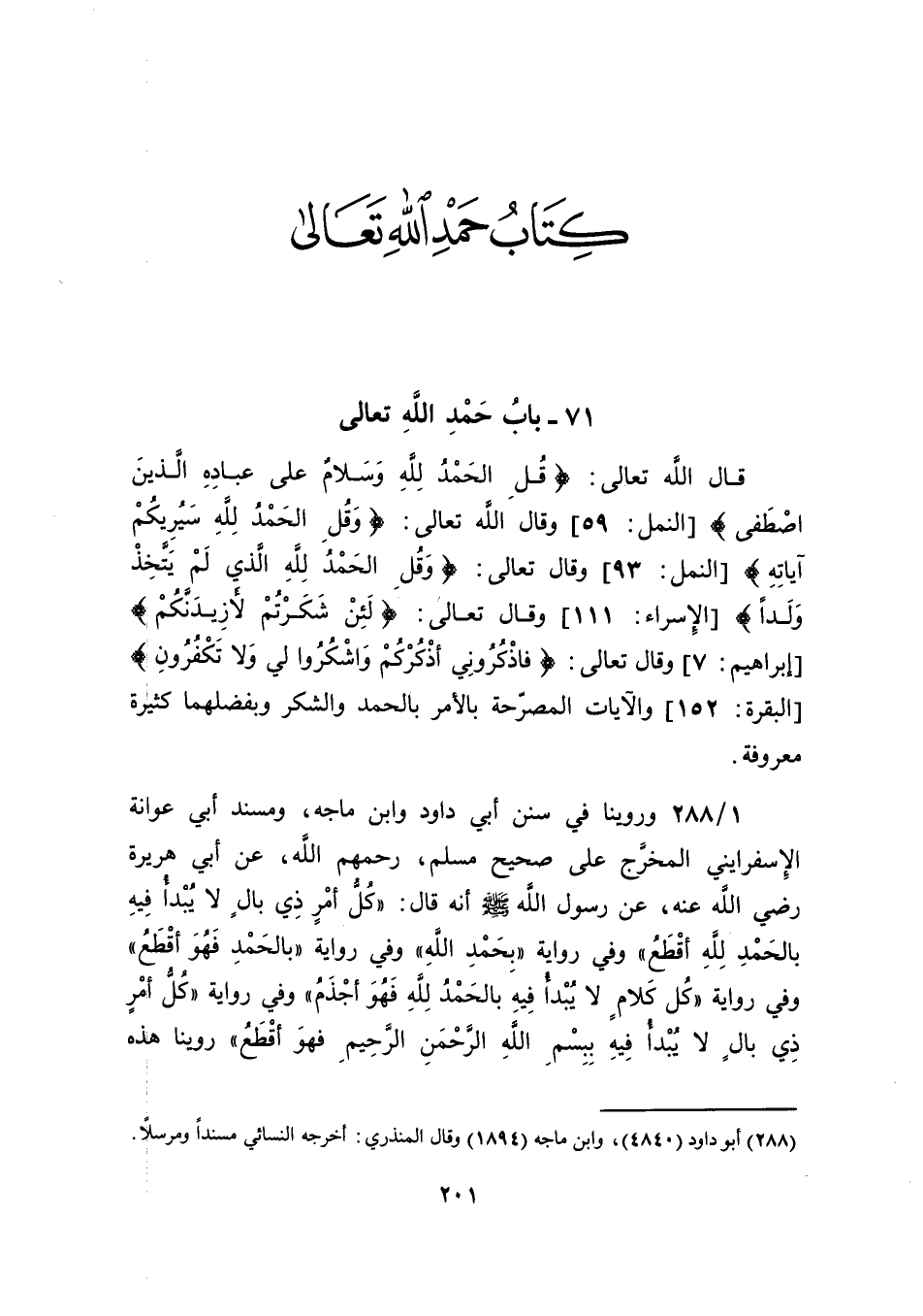 71 ـ بابُ حَمْدِ اللَّهِ تعالى