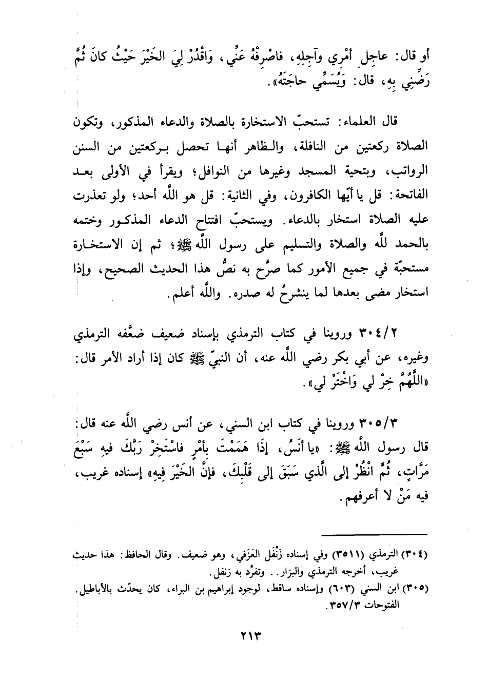قال رسول الله صلى الله عليه وسلم: "يا أنَسُ، إذَا هَمَمْتَ بِأمْرٍ فاسْتَخِرْ رَبَّكَ فيهِ سَبْعَ مَرَّاتٍ، ثُمَّ انْظُرْ إلى الَّذي سَبَقَ إلى قَلْبِكَ، فإنَّ الخَيْرَ فِيهِ" إسناده غريب، فيه مَنْ لا أعرفهم.