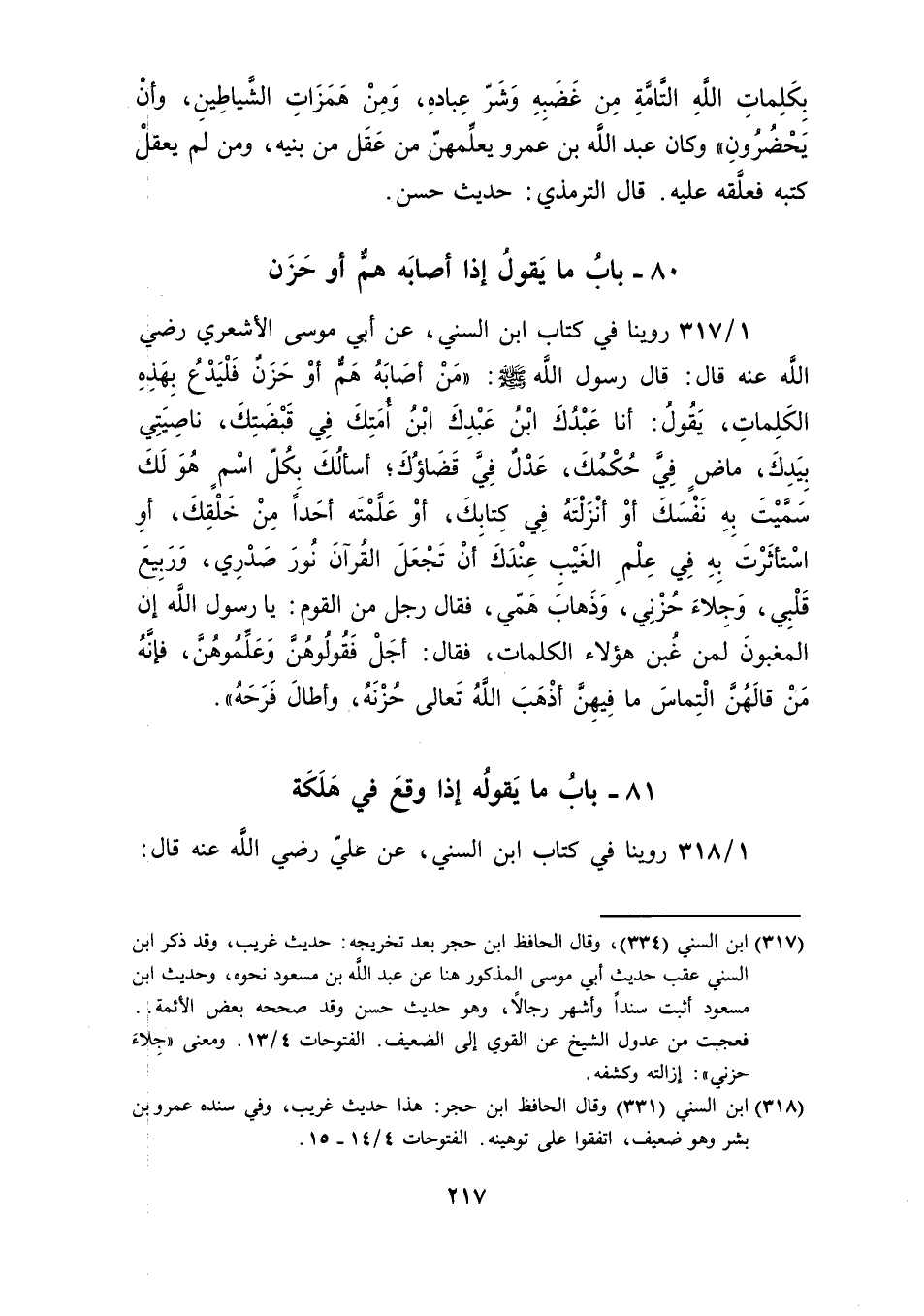 [1/ 317] روينا في كتاب ابن السني، عن أبي موسى الأشعري رضي الله عنه قال: