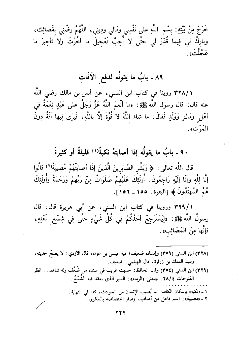 [1/ 328] روينا في كتاب ابن السني، عن أنس بن مالك رضي الله عنه قال: