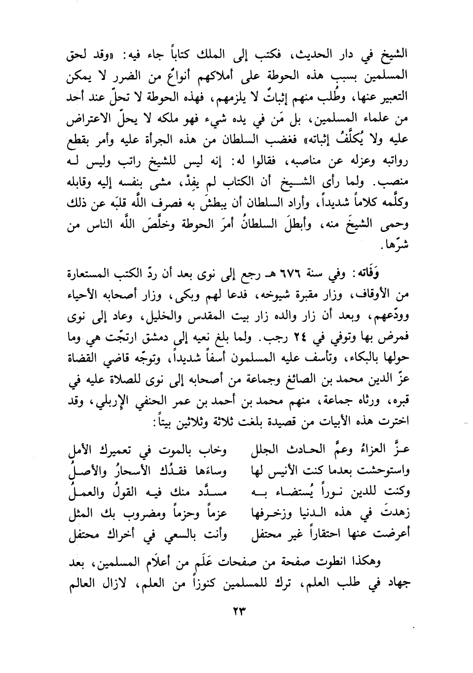 وهكذا انطوت صفحة من صفحات عَلَمٍ من أعلاَم المسلمين، بعد جهاد في طلب العلم، ترك للمسلمين كنوزًا من العلم، لا زال