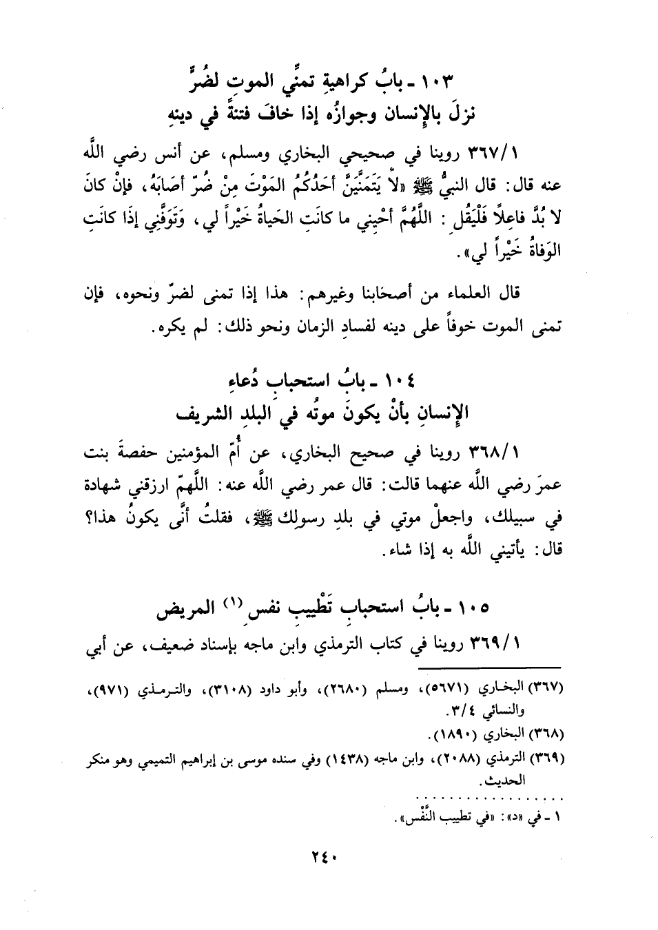 103 بابُ كراهية تمنِّي الموت لضُرٍّ نزلَ بالإِنسان وجوازُه إذا خاف فتنةً في دينهِ