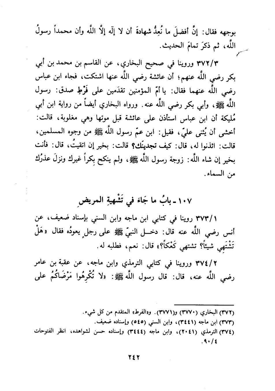107 ـ بابُ ما جَاءَ في تَشْهيةِ المريضِ