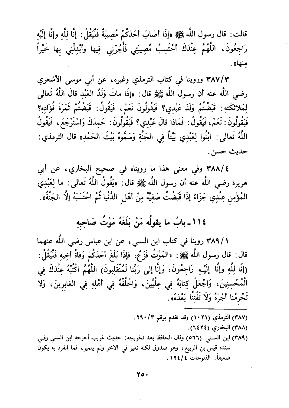 114 ـ بابُ ما يقولُه مَنْ بَلَغَهُ مَوْتُ صَاحِبِهِ