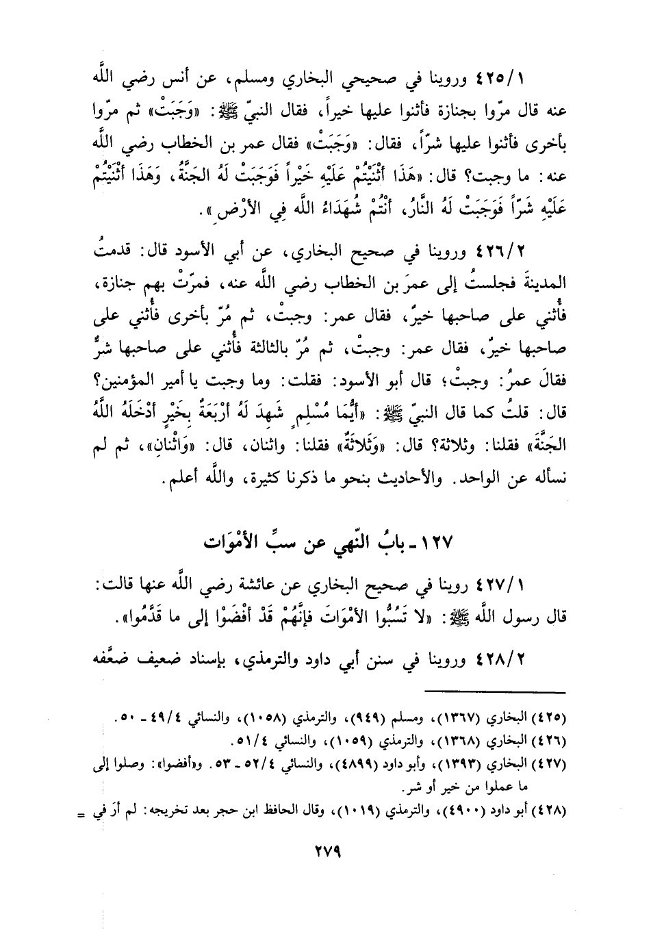 127 ـ بابُ النّهي عن سبِّ الأمْوَات