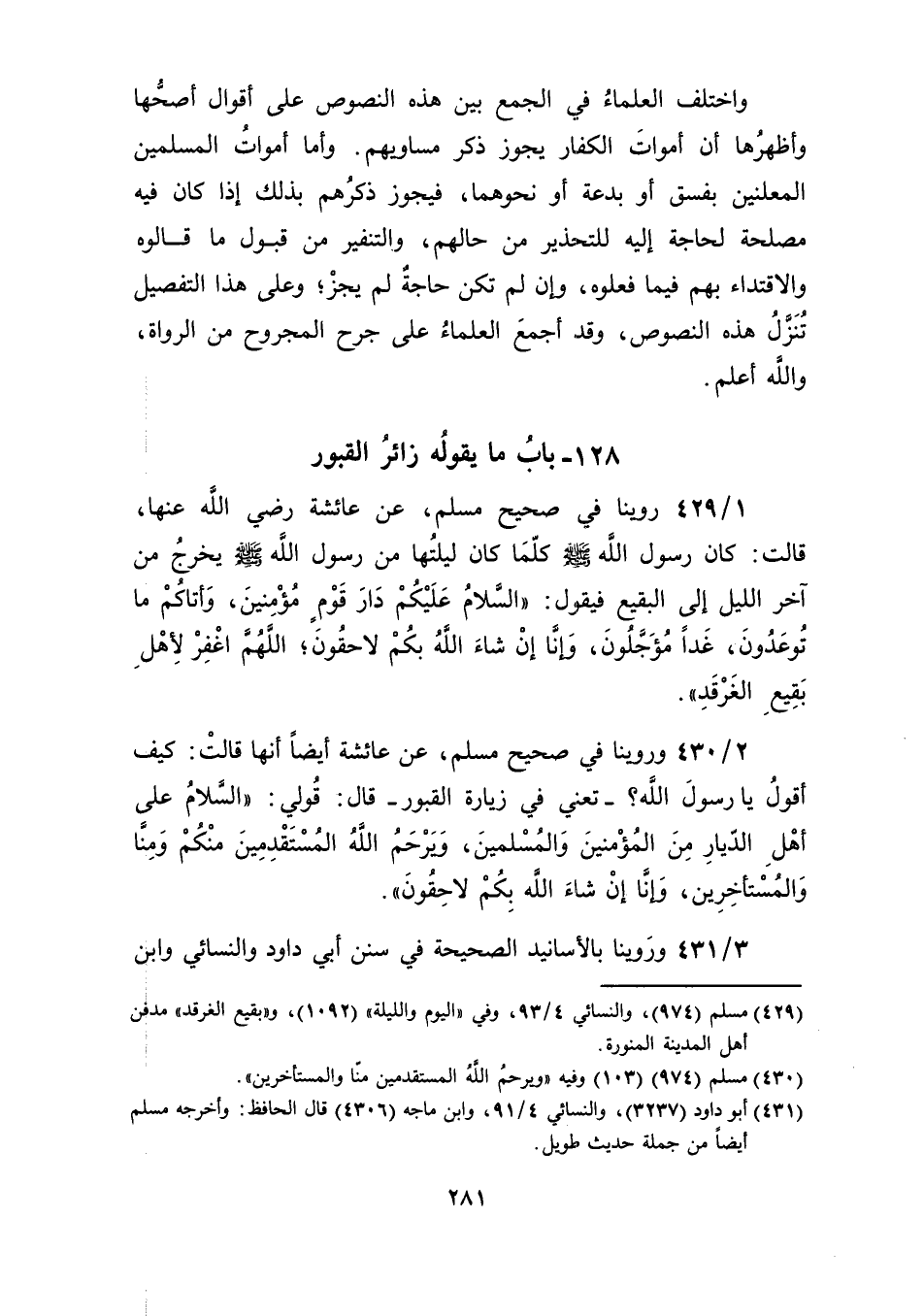 128 ـ بابُ ما يقولُه زائرُ القبور